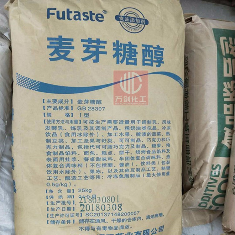 麥芽糖醇是一種性能獨(dú)特的低熱值甜味劑。不發(fā)酵,進(jìn)人人體后幾乎不消化,適合糖尿病和肥胖癥患者使用。具有良好的保濕和高黏度作用,保濕作用比山梨醇甚至甘油還要好。麥芽糖醇作為食品添加劑,甜味劑;濕潤劑;穩(wěn)定劑;組織改進(jìn)劑;填充劑。被允許在冷飲、糕點(diǎn)、果汁、餅干、面包、醬菜、糖果中使用,可按生產(chǎn)需要確定用量。